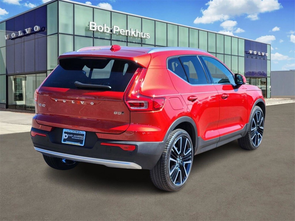 Experience a new level of confidence in our 2025 Volvo XC40 B5 Ultra AWD standing out in Fusion Red! Motivated by a TurboCharged 2.0 Liter 4 Cylinder offering 247hp tethered to an 8 Speed Geartronic Automatic transmission with mild hybrid assistance for energetically exploring your world. This All Wheel Drive SUV also has a dynamically tuned chassis for more capable handling, and it achieves nearly 26mpg on the highway. Outstanding style is standard for our XC40, thanks to Pixel Technology headlights, fog lights, bright aluminum trim, high-gloss black grille, power tailgate, a panoramic sunroof, and 20-inch diamond-cut alloy wheels.